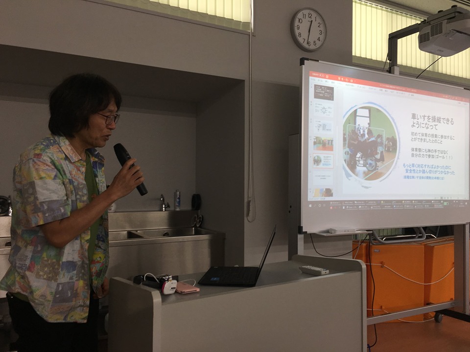 2日目大阪の支援者杉本さんから筋電車椅子やスイッチの紹介