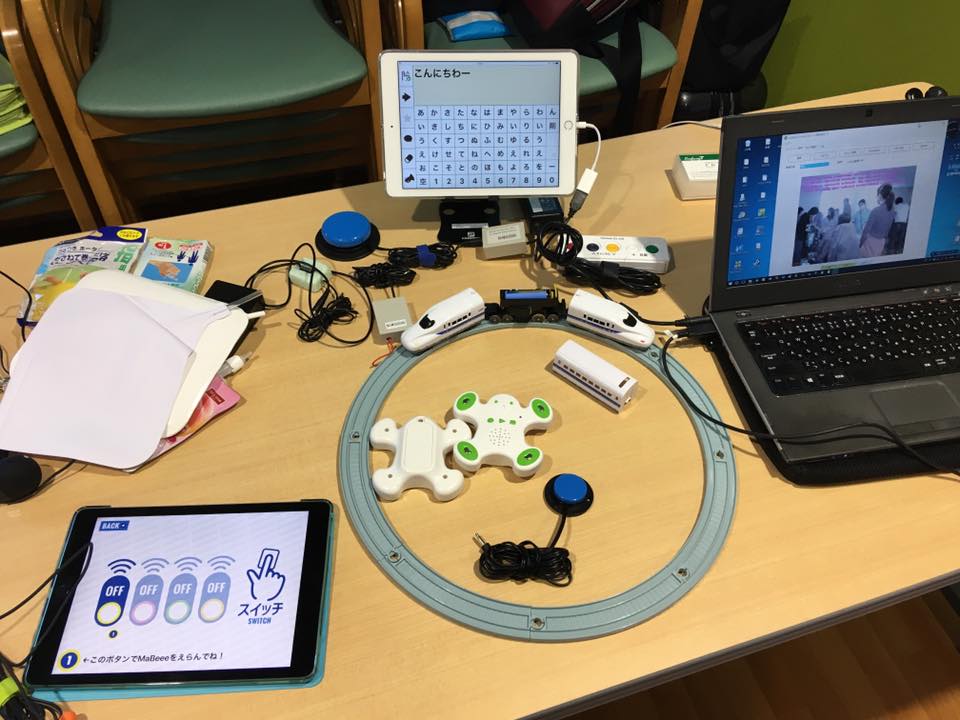透明文字盤や口文字盤等、患者さんがよく使われているツールを体験したり、支援機器の基礎的な使い方から、導入方法、入力スイッチの適合など、支援に必要な知識の伝達を行います。