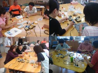 自分で作ったスイッチを使って、家庭用の玄関チャイムや電動のおもちゃなどを動かしてスイッチ一つで広がる世界を体験。