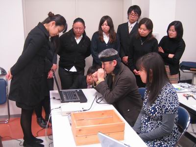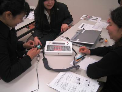 講座終了後希望者には脳血液量の変化を利用したYes/No判定装置「心語り」を体験してもらいました。