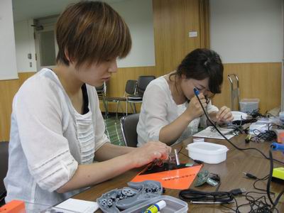このあと、希望者にゲームパッドに外付けのスイッチを付けられる様に改造する製作実習を行いました。