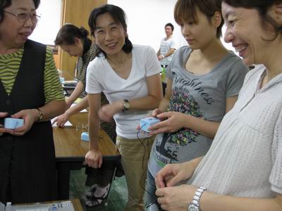そして携帯型会話補助装置(トーキングエイド、ぺチャラ、レッツチャット)の操作体験(担当:ICT救助隊・仁科)。