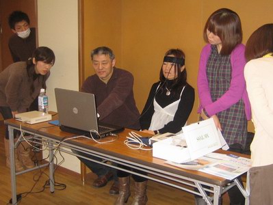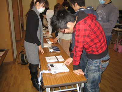 文字盤の実習と携帯型会話補助機器体験(レッツチャット、ペチャラ、トーキングエイド)