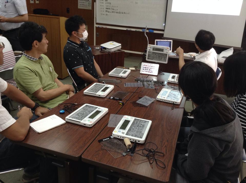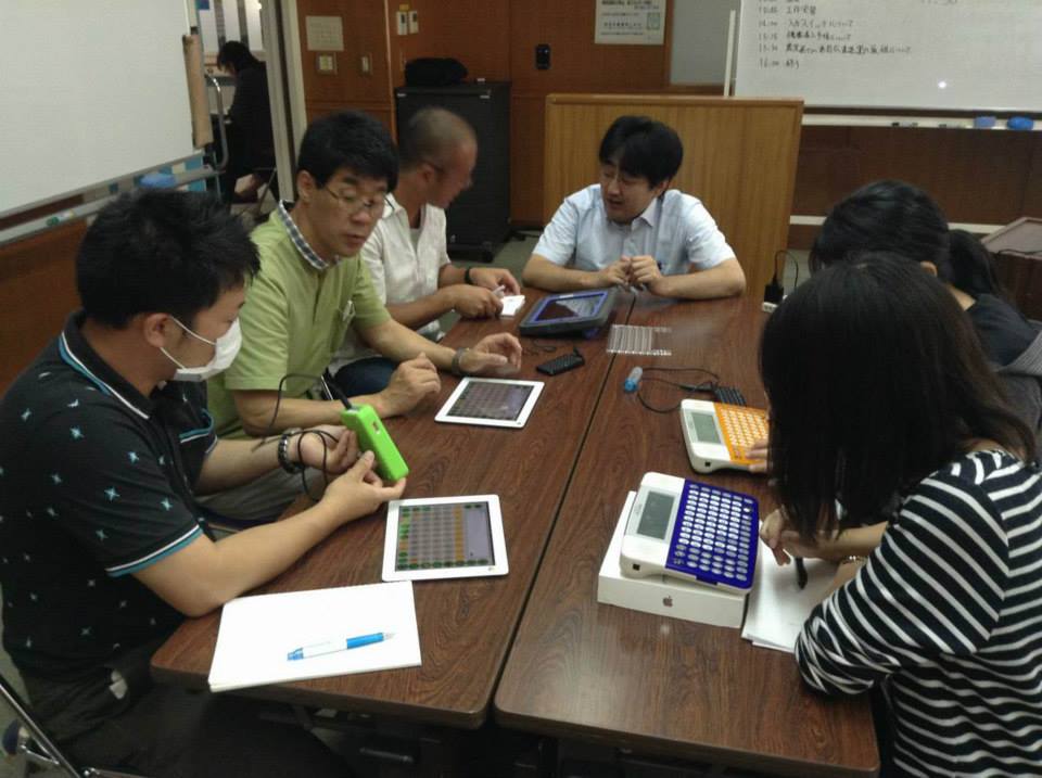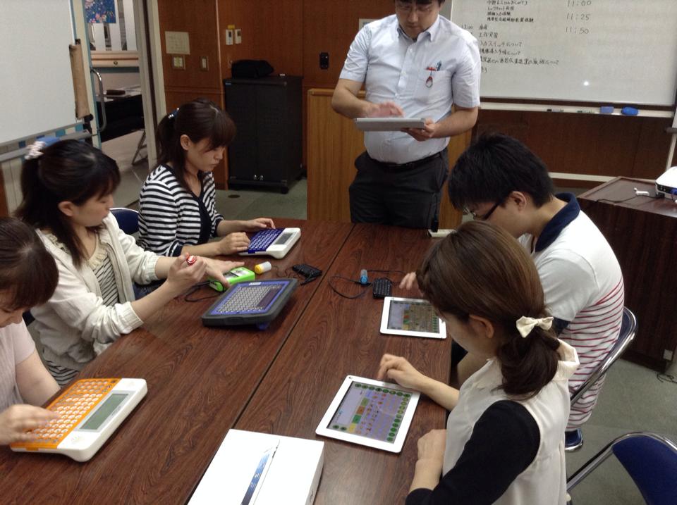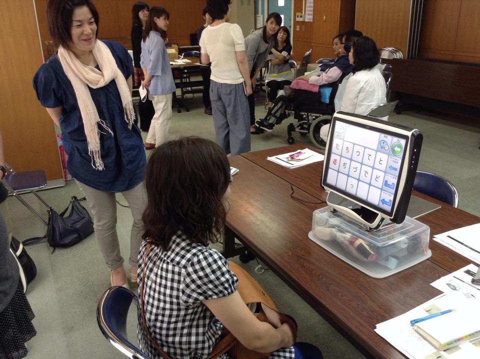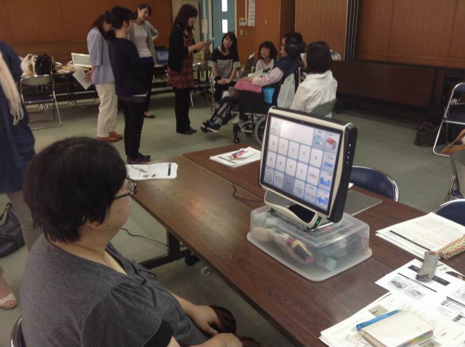 15:10 携帯型会話補助機器体験「ぺちゃら」「トーキングエイドfor iPad」、 意思伝達装置「レッツ・チャット」について