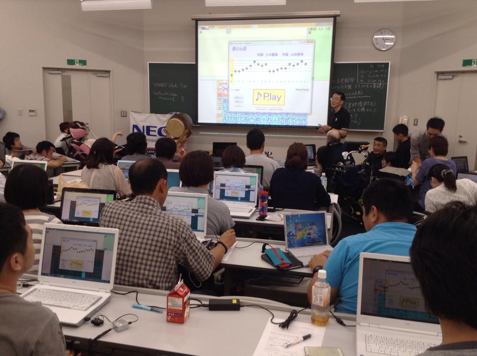 NHK Eテレ「バリバラ」に出演中の大橋グレースさんのコミュニケーション支援を行っている森ノ宮医療大学小林貴代先生とケアショップハルから、HeartyLadderのマイボイス(自分の声で発声させる)やその他の色々な機能を学びたいと要望がありました。HeartyLadderはフリーソフトで、販売業者などのサポートを受けることができないため、支援者の育成が急務になっています。そのためHeartyLadderの開発者吉村隆樹氏と、都立神経病院作業療法士本間武蔵先生にも協力していただき、HeartyLadderの初歩から応用までの講座を2日間で行いました。
