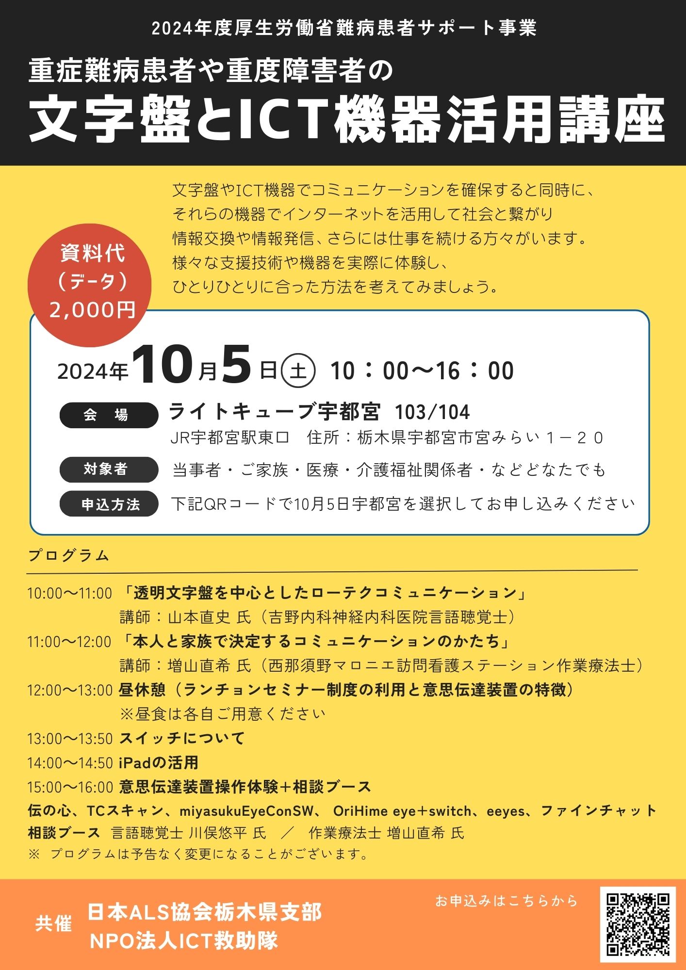 共催 日本ALS協会栃木県支部 / NPO法人ICT救助隊(2024年度厚生労働省補助事業)