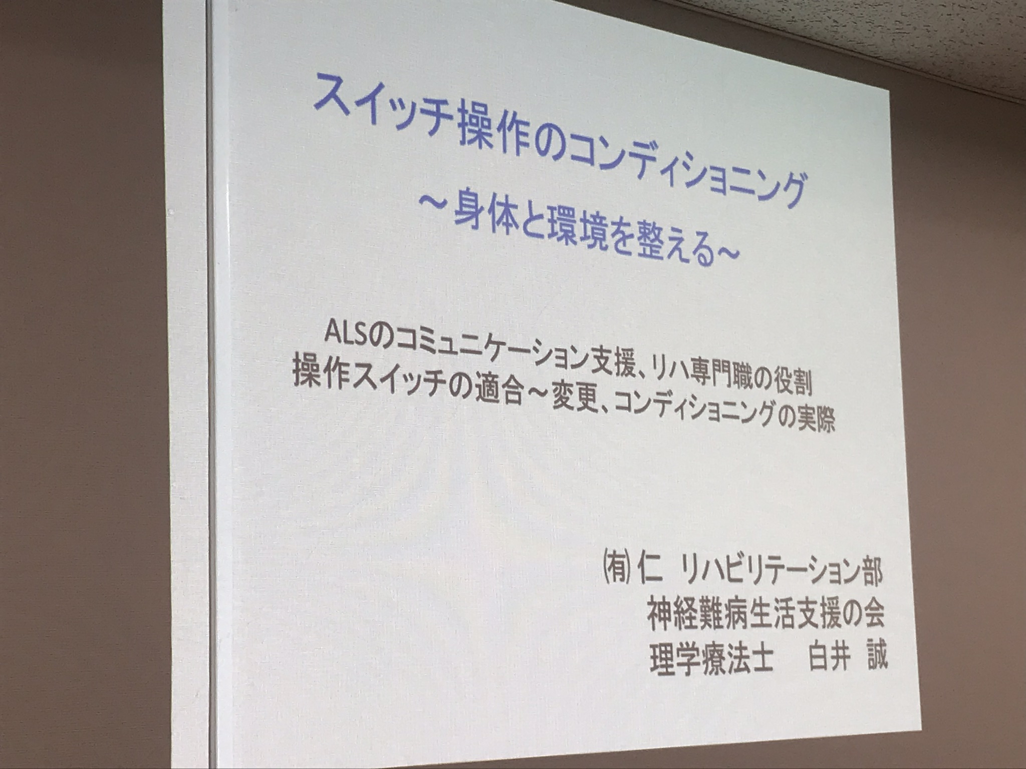 第4回目は、理学療法士白井 誠先生(有限会社 仁 リハビテーション部)による、スイッチ操作のコンディショニング(身体と環境を整える)です。