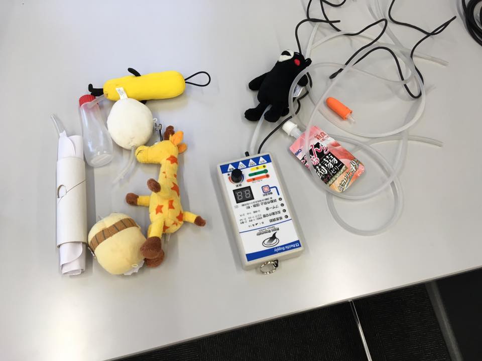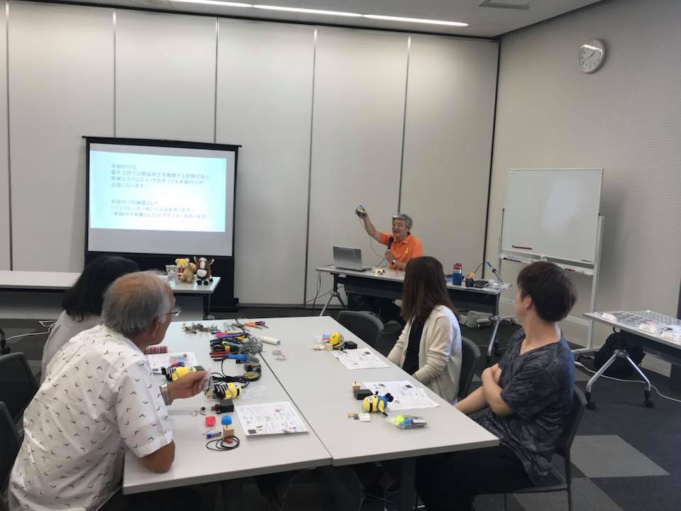 工作講座では、ぬいぐるみにバイブレータを入れて、電池ボックスにBDアダプタを接続すると、スイッチを押すとぬいぐるみが振動する仕組みを作成しました。