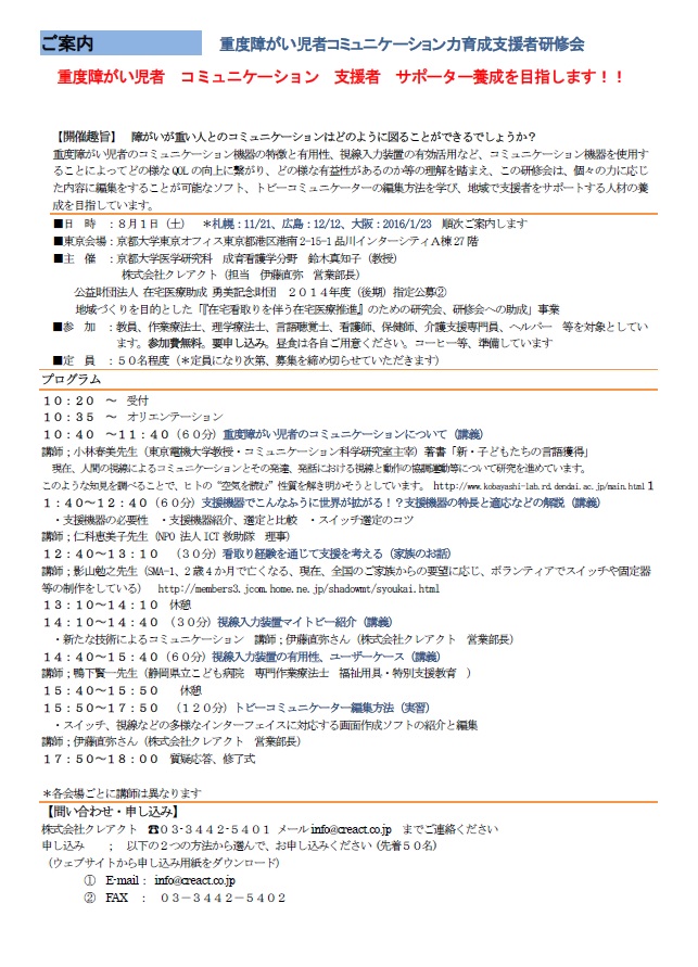 日時:支援者向け講座:2015年9月12日(土) 10時~16時
